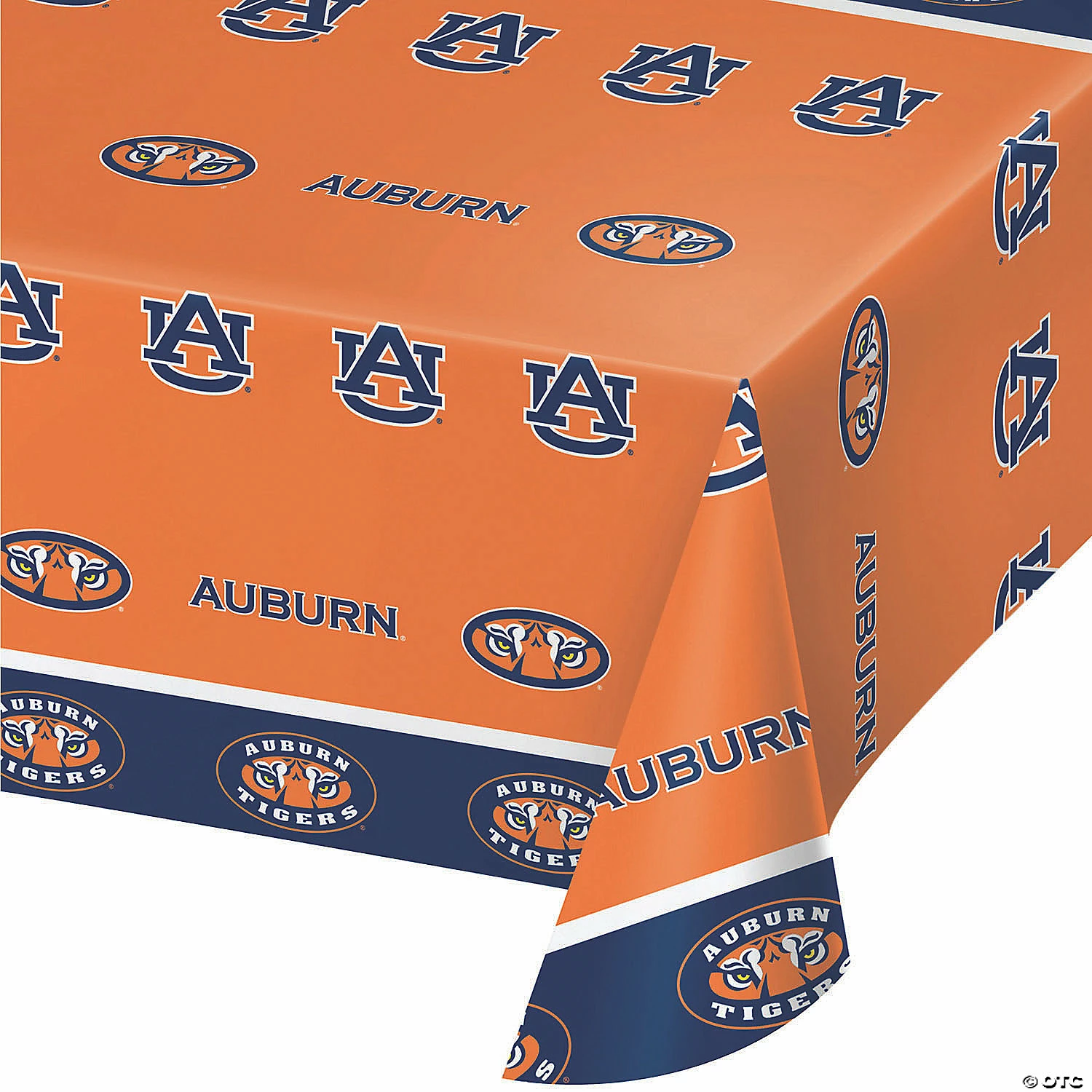 Dress your table in true Tiger style for the next tailgate, party, or cookout with this Auburn University Table Cover. This tablecloth features a cool pattern design of the Tigers logo along with the school colors. Match the Auburn Tigers Table Cover with other Auburn party supplies and decorations to show your school spirit. Special Shipping Information: This item ships separately from other items in your order. This item cannot ship to a P.O. Box. This item may be subject to additional processing days. ITEM IS NOT ELIGIBLE FOR EXPEDITED SHIPPING