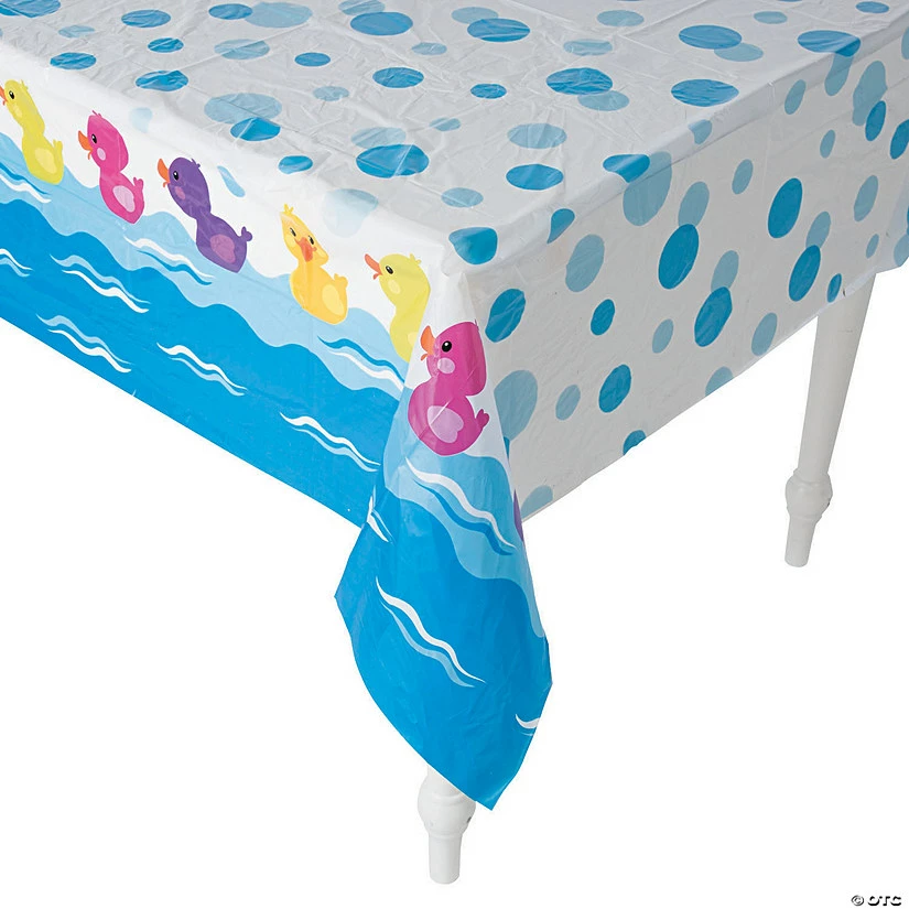 Rubber ducky tablecloth, you’re the one! When it comes to party supplies, we can’t think of a more quack-tacular way to keep your celebration trim and tidy. It features an eye-catching and colorful pattern of rubber duckies floating among bubbles. After guests have left, simply roll it up and toss it in the trash. Seriously, with this, cleaning up your party is easier than draining a bath! © OTC• Plastic. • Disposable. • 54″ x 108″
